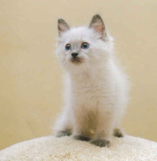 Below are pictures of the patterns and colors that I bred at Foss Mountain Ragdolls. You can see an adult cat in mature coloring and what it looks like as a kitten. Kittens are born white and their coloring comes in over time. They do look quite different as kittens!